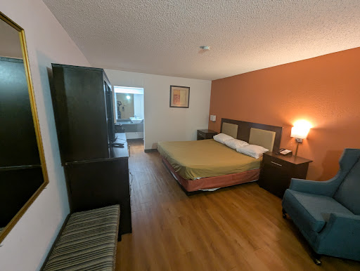 Read moreThis hotel looks like it has been remodeled, but something is very, very wrong there. I physically got the creeps when we went in the room and sat for some confused moments trying to figure out what was wrong. It was clean enough, though the carpet was slightly sticky and the bedspread looked like it came from a 1980's movie. ||Most obvious was the cramped room with furniture just dumped in there like the moving van had just left. No closet--a rack stupidly place over the TV gave you a choice, hang your stuff or use the TV. Not both. The refrig and Microwave piled up in front of the mirror...not enough room to walk to the side of the bed without pushing chair and table to the door.||And this was their "handicapped " room --the bath was enormous, but had mold in the shower/tub. When the big rigs in the parking lot left in the wee hours, our bed shook; when the working girls came home around 2:3O AM we discovered another reason we should have kept on going down the road. The walls are like paper. You can see daylight around three sides of the front door. I didn't sleep worth a damn, was just anxious to leave. Oh, the prominent sign in the lobby, "NO REFUNDS" should have been my first clue to turn around and leave. This place started our vacation off with a big buzz kill. Pissed off and head-achey all...