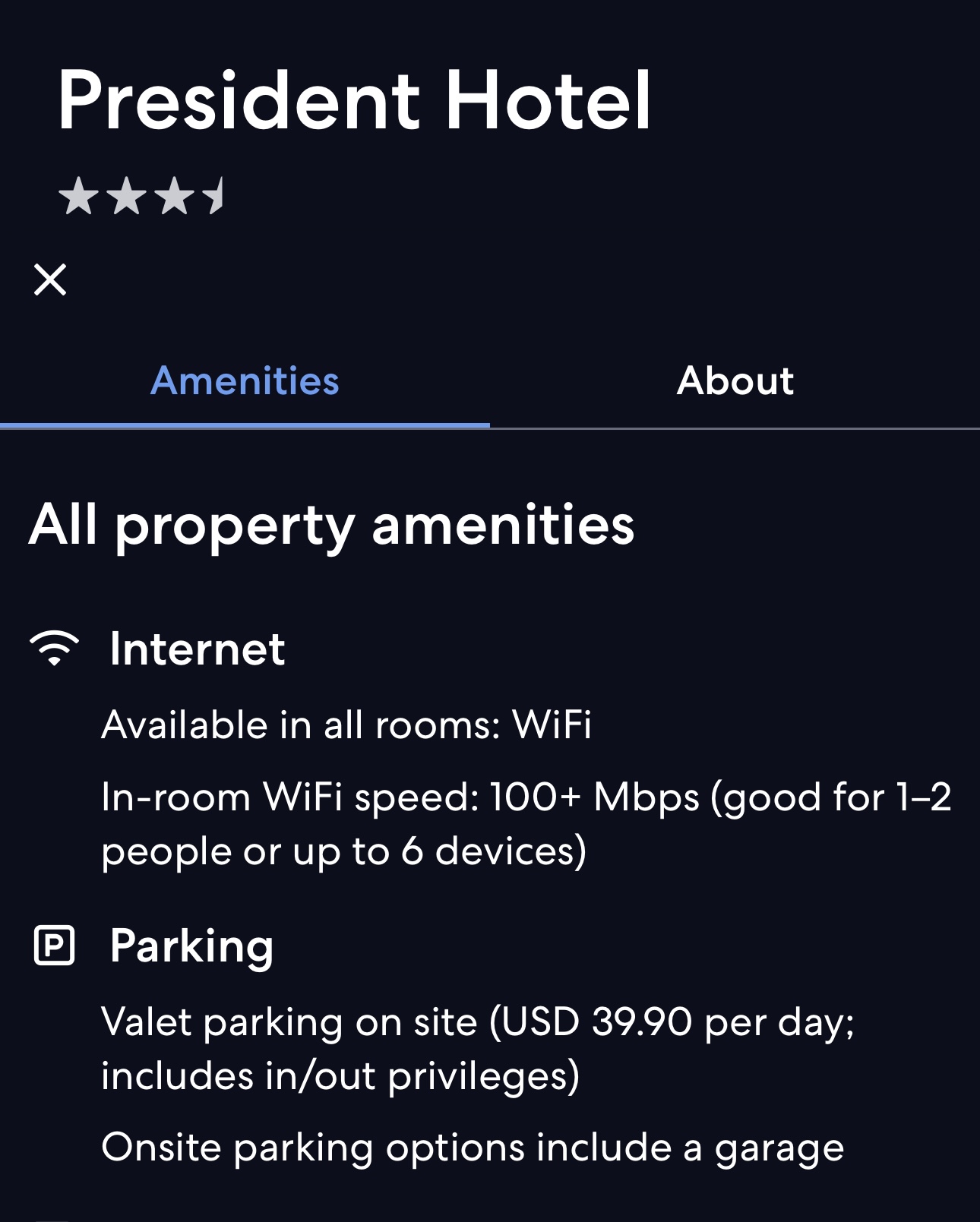 We booked a 7 day stay at President Villa with a family of four (two teens) in end Oct 2024 through Booking.com with a small discount about 10 days in advance. Two large queen size beds, a small refridgerator and breakfast included. Our room was clean and free from problems. Maybe little low on water preasure on the third floor. As stated, room is not cleaned the first three days.