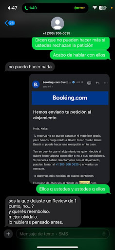 Ā Ā Ā Read moreUsing Booking.com, I booked a 2-night stay in a privately owned "suite" (# 810) within the Casablanca Hotel located at 6345 Collins Ave, Miami FL. When my wife, my daughter, and I arrived at 4:15pm EST on 12/24/2023, we pulled on to the front ramp of the property (as instructed in an email from the property owner). I attempted to check in with a gentleman standing at the valet podium located in front of the property. He did not speak English and acted as though he was unable to assist us. I proceeded to the front desk in an effort to check in (also as instructed in the email from the property owner). There was no one present. After several minutes, I returned to my vehicle and with apprehension, unloaded our bags. Considering there was no one present at the front desk, and we were unable to communicate with the gentleman out front, I provided my wife with the room number and the door code, which was also provided in the email. I told her to proceed to the room, while I attempted to locate parking for our vehicle. ||As I was parking our vehicle in a nearby parking lot, my wife called me verbalizing her displeasure with the condition of the room. She stated she was not comfortable staying in the room. I entered the Casablanca Hotel, there was still no one at the front desk. As I proceeded through the hotel, I observed conditions which did not meet my expectations. Throughout the property, the carpets were heavily soiled, areas of clutter, excessive noise, screaming, running, etc. As I opened the door to #810, I immediately noticed the door jam had visible signs of damage. One strike plate was damaged, and another was missing a screw. My wife stated she did not feel safe in the room. Objectively, (because it was Christmas eve) I began looking around the room... I observed dirty surfaces (floors, counter-tops, refrigerator), stains on bedding, burned out light bulbs, and many other conditions which added to my apprehension. ||At that time, my wife and I made the decision not to stay on property. I made multiple attempts to contact the property owner via the phone number provided in the initial booking confirmation. I received busy-signals and various messages indicating the number either wasn't working or the subscriber was unavailable. We located another property with vacancy (Hampton Inn) and made a reservation. Due to the last-minute reservation on Christmas eve, we paid considerably more per night. As we left the Casablanca Hotel, we observed there was still no one at the front desk. ||To add to my frustration, I became so occupied with the situation and state of the property, I failed to pay for parking. As a result, I received a parking citation (shame on me). |When we arrived at the alternate property, I once again attempted to call the property owner. I was unsuccessful. I sent an email to the property owner using the link provided by Booking.com. I advised the property owner that we were not comfortable with the conditions, we did not stay at the property, and requested for them to contact me to discuss in greater detail.|| On 12/27, I sent another email to the property owner using an alternate email address I located in one of the emails I received from them. Once again, I advised that we did not stay at the property and requested for them to acknowledge email receipt and to contact me to discuss in greater detail. To date, I have received no direct response from the property owner. ||I have contacted Booking.com multiple times via phone and email. I was asked to provide a detailed explanation and photos. I was told they would address the situation with the property owner. Booking.com informed me the property owner started the property was clean and disinfected prior to our arrival. Therefore, refused to refund the amount paid. Booking.com has now informed me there is nothing they can do and I must contact the owner directly. ||I vow to never utilize services offered by Booking. com. Nor will I ever consider staying at the Casablanca Hotel located at 6345 Collins Ave, Miami FL......