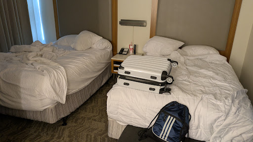 In Miami, you get what you pay for. There is an airport shuttle. It leaves every hour from the hotel (during its operating hours). It takes about 15 minutes to get to the airport. There are two designated hotel shuttle pick up/drop off points at the airport. The shuttle is a black sprinter van that says “Ringhill suites” on the side. Yes the “Sp” is cut off. The shuttle driver is fast so you have to have eagle eyes to flag him down. Upon arrival, there was a large line to check in and only one person working. Finally a second person came out to help. There is popcorn made in the lobby in the evenings as well that is complimentary. There is a small bar that serves small food as well. There is only one elevator working. This made it very difficult when the elevators are really only big enough for one family’s worth of luggage or one housekeeping cart. Yes, the housekeeping used these elevators in addition to the guests. Therefore, the elevator waits were long for going up and going down, especially at breakfast time. Sometimes it was over a 20 minute wait for an elevator that was empty enough to fit or going the right direction. In the hallways there are “odorizors”. Yes, to add odor to the hallways, it sprayed out very often and smelled like cologne. Upon arrival to the room, there were burn marks/stains on the carpet, the outlet by the sink was burned and did not work, the hair dryer did not work, most of the outlets were extremely loose, the colors were messed up on the tv, the tv had no tv guide, there were only 3 towel sets in a room that can sleep 5, and there were no extra towels to be found by the pool or by the workout room. There were no employees in the lobby or at the desk to ask about towels, the sign literally said we will be with you shortly on the desk. The beds were very well used and you sink in towards the middle of the bed, and these beds were full size, not queen size. Our room actually had a nice view of the lagoon and a table with four chairs. There was also a desk, and a counter with a coffee machine, and a mini fridge. There was a pull out sofa and coffee table. Therefore there was a decent amount of room to spread out. The sink is outside the bathroom with the toilet and shower. The inside of the bathroom was all rusted and warped from the humidity in the shower. There was also a small closet near the sink as well. The type of people that are staying here are lots of families with kids, whole sports teams of kids, and lots of people going on cruises. Just keep this in mind when thinking about people you will run into in the lobby, hallway, elevator, and breakfast. Breakfast is complimentary, however it is absolute mayhem. There is wall to wall people everywhere, people are grabbing things like crazy, kids are spilling things everywhere. The whole thing is completely unmonitored by both parents and hotel workers. Kids are coughing and sneezing on the buffet items, things are out of stock and not replaced. There is a small outdoor area to sit which is on the lagoon which is nice. Otherwise every table in the lobby and breakfast area was taken up. There were some tables by the pool area, but it was very windy. The only thing we felt safe doing was getting cereal from the dispenser since nobody could contaminate that, and covering it with another bowl and taking the stairs up to the room with our breakfast. After taking the stairs it smelled like someone had smoked something green in the stairwell. We went out to eat the first night and the next morning we took an Uber to the port and had no problems with Ubers to and from this location. Overall this hotel was very well used and very run down. You can see all the areas of improvement. We will not be staying here again, and will instead stay somewhere closer to the port of Miami and pay a little more. If you stay here, beware of what you pay for what you get and plan not to stay more than...
