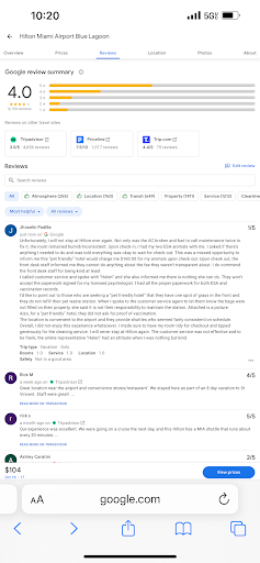 Read moreMy daughter and I stayed here 3 nights while her service dog was in the hospital nearby. While the location is convenient (several dining options a few steps away, overlooks the airport and business park), breakfast was good, spacious rooms, those are the only positives we experienced. We checked in and had a first floor room near the lobby. Good thing as one of the elevators was out of service. We went to use the toilet only to find it was not even assembled. The lid fell off in my hand and the seat was not even attached to the toilet! Forget about flushing. Every time I had to remove the tank lid, mess with the lever inside until it would flush and fill up. Then within 5 mins of being in the room, we discovered our feet were black with dirt despite the overpowering smell of cleaning solution. I went to complain to the front desk and was told someone from maintenance would be there shortly. No such luck. So the next day when we left to visit her dog, we told the front desk that we were leaving and they could send housekeeping and maintenance to fix things. I also let them know that water was spilled on one bed and we had stripped the sheets to prevent the mattress from getting soaked. We returned later that evening to find the sheets still piled up on the floor, the bed not made with sheets, and the floor still filthy. They did reattach the toliet lid and seat. However, when I went to use it, the lid fell off as I lifted it and I still could not flush without messing with the tank parts. I went back to the front desk to complain again. A mismatch of bed linens was eventually left outside our door and I had to make the bed. Despite my complaints, nothing had been done. The other headache was the gated parking garage. You have to pay $15 a night to park and use your room key to enter/exit. Well twice we could not enter so we had to go to the desk for a new key. When we went to leave after checking out, we could not get out of the garage. Upon checking out I was asked how our stay was and I told them again how our room was never cleaned, I had to make the bed, the toilet was never fixed and the garage was a headache. All the person could say was I’m sorry. No discount or anything offered. I am not one to complain, but this was one of the worst stays we’ve ever had in a hotel. I spent over $800 for 3 nights and this is the service we get? I...