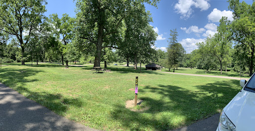 Campsites: From the aerial photos this campground looked pretty open, and in person it is exceptionally so. The campground is mostly flat, with sites sloping toward a stream on the eastern edge. Aside from these sites, there is pretty much zero privacy and very little shade except on sites in the NE corner. Sites are clustered pretty close together too, so expect to get to know your neighbors. Fire grates and picnic tables were in good condition. This campground has not been modernized much besides the newer vault toilets and moving the campground entrance from Route 370 to the park entrance road with a new parking lot. The south lips are NOT advisable for people with more than a small motorhome or camper as the roads are all one lane wide and trees are very close to the pavement even on tight curves. If you have a long RV, do yourself and everyone else a favor and don't even drive through the south loops because you will not be able to get back out easily and 90% of the sites are tent-only.
