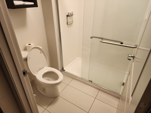 When we called the front desk they first said that they do not have any shower rooms. Then one happened to show up. When we went to the new room we were disappointed to see that it was substantially smaller. The toilet room was so small that I had to get in the shower to shut the door. There is also no fan in the bathroom.