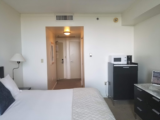 Read moreThis hotel stay was a pretty mixed bag. First, the good. We liked the location. The room was spacious, 99% clean, and well-appointed with fridge and microwave. Price was pretty okay for everything you get, and included parking in the attached garage. We even had a bit of a sea view from our very tiny balcony. Email communication was pleasant and good.