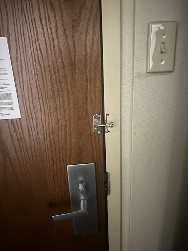 When we got to the room (435) I noticed immediately that the night latch was broken. The deadbolt worked, so we tried to brush it off. About 30 minutes later, someone unlocked our door and walked right into our room. A young woman, just as confused as we were, had also been given the same room. We were shocked and understandably unsettled.