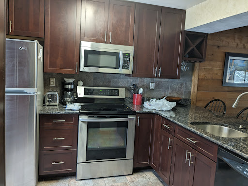 This is a pretty nice place! The pros outweigh the cons. Pros: it's very close to Seven Springs, it has a shuttle to take you to and from Seven Springs, it has an AMAZING hot tub, the kitchen is nice- well stocked with plates, cups, silverware, etc, nice wood burning stove, nice layout of the town home, great communication from the owners, some of the pictures on the wall were pretty awesome, having a window in the master bedroom looking down into the living area was pretty cool, loved the half bathroom downstairs.