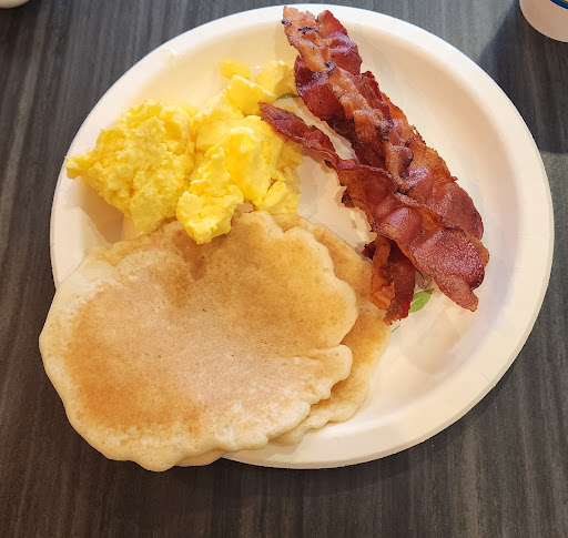 Every table was dirty. My wife went back up to the room to get Clorox wipes to wipe a table for us to eat what little was available. We ultimately left and went out for breakfast at our expense.