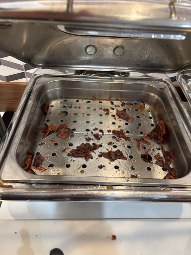 We awoke to these guests again the next morning. We went to have breakfast, and most of the food was depleted. No eggs, bacon, hashbrowns. One of the two coffee makers was out of order, two of the juices were out of order.