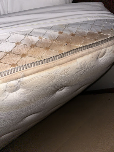The condition of the place is no better. You can tell they don’t actually mop the floors. Maybe a quick sweep here and there, because the floors are grimy and nasty. The bathroom reeked of mold and mildew, with rust and mildew along the ceiling. One ceiling tile even had a large, mildewed, discolored wet spot staring back at me.