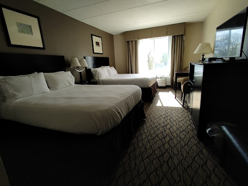 When we checked in all went well…especially after a 6+ hour drive. Bed was comfortable and the pillows were great. I got up in the morning to take a shower, no water, just a trickle. After three attempts, I went downstairs and Dakota at the front desk was wonderful and when Lou the maintenance man tried to fix it and couldn’t, he was so gracious and apologetic. We had to move to another room.||And it went downhill from there. Several times I was asked if I wanted an upgrade to a suite, no, just a room please. I was given keys to a new room. Went upstairs, packed and went to the new room. Neither keys worked, tried another couple of times. Back downstairs, explained the keys did not work and they were reset. Upstairs again, still didn’t work. Asked a very nice housekeeper to do us a favor and check to see if we were doing something wrong. She used both keys, nothing. She used her master key, nothing. She went and called downstairs and a gentleman came up and nothing, the room must be where Holiday Inn keeps State secrets, because the man from downstairs just waved new keys at us…you guessed it, another room.||If you stay at this hotel, do not allow them to put you in Room 409. The bed is awful, pancakes are fluffier than the pillows and two sets of pipes sound like a train morning, noon and night. And upon closer inspection there was someones used and tried out nicotine pouch. Which I had to pick up and dispose of. After that I opted out of room cleaning and just asked for fresh towels daily. Was told to leave the dirty ones in the hall and they would be replaced. Their idea of replaced is empty towels racks and having to ask for towels at the front desk. Went down for a swim, and the pool was so heavily chlorinated I couldn’t see the bottom of the shallow end. Went back upstairs.||Book this hotel through something like TripAdvisor because the end invoice didn’t remotely make any sense for the day to day charges. We think that they tried to bill us higher than we paid for upon making the reservations. Check your bill.||And last but not least, someone hit our car in the parking lot. The remarkably disinterested man that morning told us that there were two cameras in the parking lot and he would check them and call me. Yup, still waiting. He lied to my face.||Spend a couple of extra dollars a night, your car...