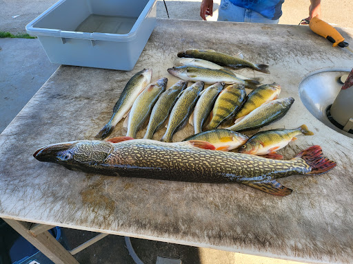 We fished the lake until dark and had an absolute blast. After leaving the lake we went back into town to the McQuoid indoor fish cleaning shack. “Shack” is probably not the most appropriate term because this was hands down one of the nicest fish cleaning stations that I’ve ever seen. Aaron efficiently fileted our fish and packaged them up for our trip back home to Wisconsin. We had the pleasure of meeting Mrs. McQuoid who allowed us to cook some of our fish on the spot in their deep fryer.