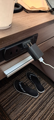 Our first room electrical and USB sockets were not installed. There was nothing there (see pictures). Almost like they forgot to properly build out some parts of this room. And for both our stays, the carpet squares were coming up, creating a tripping hazard within the room.