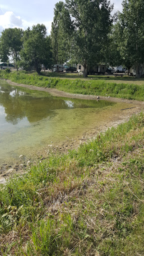 Read moreWe came here for work. Was supposed to be here for about 3 months. Things changed and our job took us away after 1 week. In that week we discovered that the back area where they put their "long timers" and "workers" was infested with mosquitoes and geese. Most people I have seen with pets pick up after them but the geese poop everywhere. All along the back area there is tall brush with fuzzy things that float in the air and stick to everything plus thorn bushes. When we called the make the reservation we told them we had kayaks and would be fishing in the pond and river. They made it out to sound like a lot of people fish here. There is no safe way to access the river through the steep banks and thick brush. The lake/pond is very low due to lack of rain and is a mosquito breeding ground. The back area has large rocks that can pop out from under tires and break windows...I know first hand as I watched it happen to my buddy's truck. The front of the park is nice and well kept, but if you plan on staying very long and they put you in the back...good luck. One other thing is the shower/restroom area...there is no private area to take a shower. There are 4 or 5 toilet stalls and 4 showers but one is out of order. The showers are separated by a curtain to the rest of the shower house and restrooms. Also take your money with you if you want to take a shower... $1 for 5 mins and .25 per...