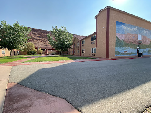 breakfast was awesome; omelettes with side bowls of ingredients, salsa was really good, three kinds of bread and waffle-like toast, biscuits and gravy, bacon and eggs, automated pancake maker... Big roomy clean cafeteria. Moab is a small town so nothing is far away. This site is on the edge of town. 5 minutes to downtown shops etc. The scenery around this area just is totally amazing. All the pictures show it. It just goes on and on and on. Definitely recommend this hotel without a doubt. I mean went to a place not too far from here, same price, was very tiny little rooms, musty smell from the air conditioner. Was just a drag. The only reason I'm not giving out their name is because they were kind enough to give...