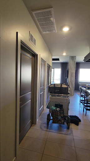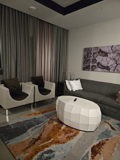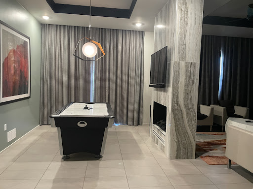 The place was nice with lots of space. We were in the third floor presidential suite with 3 bedrooms. The kitchen and master bath were big. The mattresses and pillows were very comfortable. The rest of the furniture was very uncomfortable. It was clear they chose the modern aesthetic over comfort or function. There is also no traditional table only a counter height breakfast bar. Although they provided some packets for laundry and dishwashing, I wish they would have provided some general cleaner to wipe up the counters after cooking. They provided some small packets of spices but nothing else to cook like olive oil which you typically get at Air BnB’s. The pool was crowded but nice. They had three separate hot tubs which was nice. Although the kids had fun with the air hockey table in the room, the puck kept getting stuck in the goal and it was so loud!! The stark walls and tiles floor made...