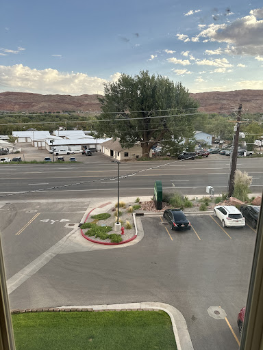 Cons: like every hotel in Moab, this hotel is located on the highway but unlike many, this is right on the far edge of town, on a hill. All vehicles on the highway are accelerating up the hill as the speed limit increases, and trucks are deafening. If you are forced to stay here, ask for a room on the back.