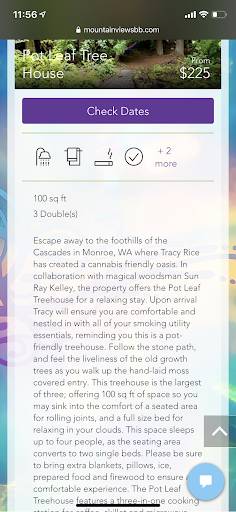 Ā Ā Ā Read moreTo anyone reading, take this at face value. This is an honest review of our experience. I also want to preface this review with an apology: I wanted to love this place, I really, really did. Tracy herself was so nice and lovely, and I even emailed her and discussed my concerns. However, for what we paid, we were given uncomfortable beds, a small kitchenette inside a barn, and a port-o-potty during a global pandemic- I feel like itās necessary to offer up this review to assist those who might feel similarly misled or uninformed. I booked a treehouse for my partner and I for a one night getaway from the city. The reviews are all phenomenal as you can see and I had thought I was prepared for what our stay would be like based on the information I could find, but I learned AFTER our stay the majority of reviews were for the big āPot Leafā treehouse. We stayed in the 420 treehouse, and on the website the reviews donāt change based on your selection, so all the reviews were not relative to the treehouse we booked. (Iāve attached photos for better explanation. I sent these to Tracy and she agreed they are misleading and promised to amend this.) However, this doesnāt negate the fact that we paid over $250 with taxes for one night in a treehouse and an upgrade to use the hot tub. I will say that the hot tub was nice, and there were some pretty views of the mountains. Tracyās sweet dog Poncho and pig were also helpful additions to improve the experience, however, Iām really sorry, Tracy. I know you run this all on your own and mean well - plenty of people love this place- Iām just disappointed because it didnāt live up to our expectations. If we had wanted to use the main houseās bathroom, it wouldāve put our bill at or around $300- at which point, we shouldāve just...