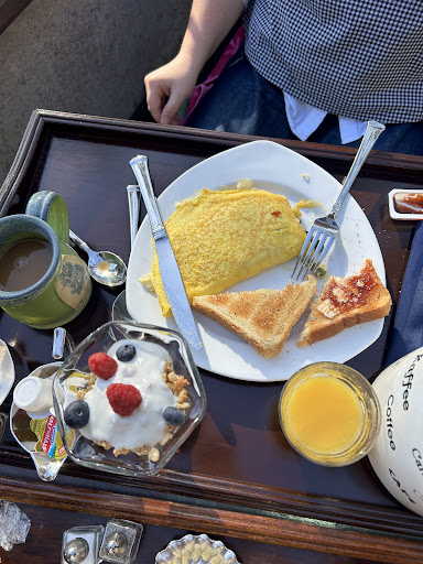 At 7:30 AM, we found a basket with coffee, hot chocolate, and biscotti awaiting us - nice way to start the morning. Breakfast was served in a beautiful antique style dining room, adorned with the original dining table from 1929. The food was lovely, the staff was very kind, and the other guests were all very pleasant.