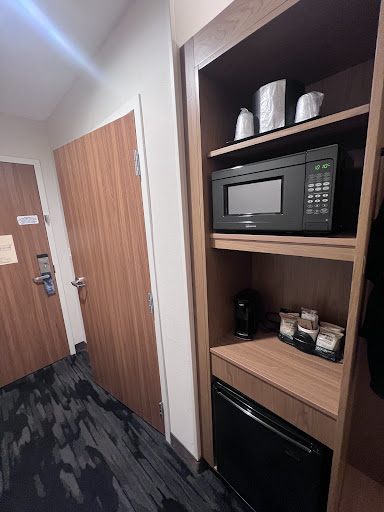 Read moreI drove in from out of state, I did a web search and found that this FarfieldInn was brand new construction so I made my reservation. I even became a Marriot rewards member because of it. When I arrived, I tried to use the mobile check-in but there was an issue with the app, not a big deal, well so I thought! Apparently there the woman ahead of me who was a Costo employee ( i know this because it was stiched into her work blouse) was beyond annoyed the app wasn’t working because we exchanged a few words about it and she grabbed the call phone to get in, AGAIN she was MAD! I personally found this comforting and saw it as a security for guest and staff. However, this woman was fit to be tied and then began to let out her all of her bottled up frustrations on the young lady at the front desk. This irate person’s energy was just infuriating because no matter how hard the young lady who I believe is named Ashley tried to be accommodating, to every request only to be meet with anger and hostility. When this woman finally got what she wanted she stormed off, now it was my turn to check-in. Immediately I said to Ashley HI, just so you know I’m in a good mood! Instantly Ashley realized I was not a grouch! We both smiled and Ashley sweetly welcomed me to the hotel and quickly had me checked in and I was off to my room. The room was great clean, fresh, modern, and best of all the bed was soft! That is a huge plus for me, I took a nap and was woken up by some the guest next door. Turns out the walls are not so sound proof but it was fine I was heading out to dinner. Now for the down side when I left my room the hallway was ingulfed with the thick pungent aroma of marijuana. When I got to the lobby I went to the front desk and spoke to Ashley about how the floor reeked of marijuana, she thanked me and said she would address the issue. When I got back from dinner and got to my floor the air had improved. The next morning, I went down stairs and collected my sack breakfast which I was really impressed with and it was very filling. I had my cup of coffee and I was off! All in all, the customer service was Steller, the continental breakfast satisfying, and I slept well despite the thin walls. My stay was short and, in this case, it...