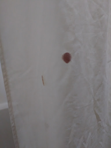 Cons: Tiny bathroom, no fan Deteriorating everything from baseboards to paint job to air conditioner. Old, and felt dirty and just painted over instead of cleaned. Thin walls and, on our visit, loud and rude nocturnal guests. Shouting in hallways, in and out, slamming doors late into the night. I had to put on nature sounds (pouring rain and thunder) for us to be able to sleep