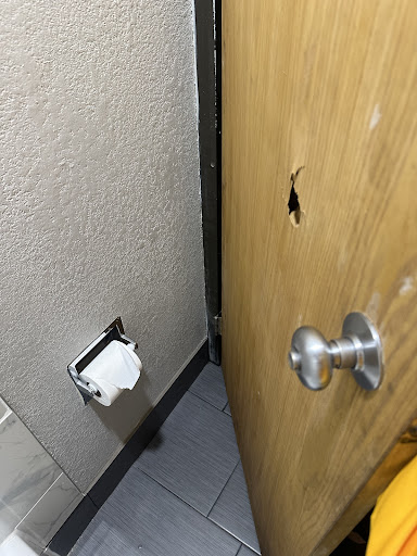 Building/Rooms = Building is old and out-dated; disgusting, worn out carpet. Hallways, lobby area, entry were humid and hot. Hallways throughout smell like weed. Room REEKS of cigarette smoke. Brought in air freshener and odor neutralizer to help. Turned on room fan/AC, but even that seemed to pump in stale air/smell. Overall, the hotel does not offer much. No pool, no hot tub, skimpy breakfast.