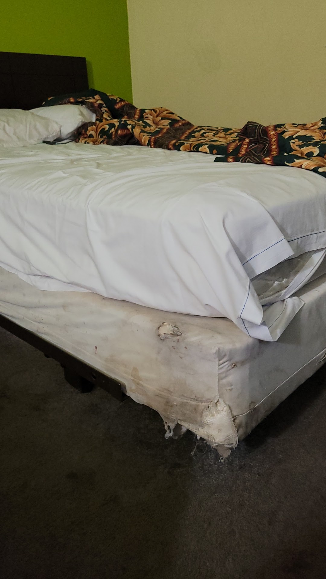 Read moreBeware!!! Water bugs Water Bugs Water bugs !!!!! one crawled on my pillow I thought it was a spider! So I would not rest until that buzzert was found !!! Well one was crushed and here comes another. They seem to have appeared when I sat on the bed! Talking about a bad damn experience! This was the worst I have ever had I was just mortified that these big huge bugs were crawling around my head!!! Then it didn't stop there! They were crawling outside the door on the ground!!! That was the last damn straw for me! So then we go to return the key and a here were more Water Bugs crawling on the main building. A lady was leaning against the wall and I warned her to not stand there because of the huge creatures! How in the world can a place still provide rooms to people when they are infested with bugs!! How? I was itching and scratching all night long! Writing this review is making me flash back to this horrific experience . Last but not least the bed was in horrible shape. The mattress had a very big slit in it and burn marks and other nasty looking stains! In my opinion, those bugs were in the mattress and once we sat on it that is what disturbed those little creatures! I'm sick behind this, just...