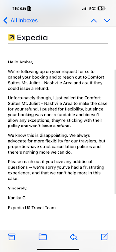 Read moreMy husband and I decided to take a last minute trip to Nashville and had initially booked at another hotel for Friday 9/20-Sunday 9/22 and had an awful experience and couldn’t even get past checking in. We had driven over 5 hours and arrived at that hotel around 1am. After that experience, we were left at 1am to search for another hotel within that area. We tried to book another room online for Friday but because it was after midnight, it wouldn’t allow us to book. We called this Comfort Suites and I spoke to a very nice lady on the phone and we chose to go there and stay there. She checked us in and we booked the 2nd night through the website. She was able to coordinate us being able to stay in the same room both nights. The first night somehow was booked in my name and the second was my husbands name. We were assured everything was good to go. The issue comes in, Saturday morning. Simultaneously, our room phone rings and someone started knocking on the door. I picked up the phone and the front desk girl asked if we’re checking out soon? I said no, we are here for tonight as well and explained to her the situation and she was like oh, I see I’m sorry! She said you’re good and we were good to go. Around 9pm Saturday night, we were at dinner and my cell phone rings.. it was the hotel again, another girl calls and says that they went into our room to clean and we had left stuff in the room and asked if we wanted to have it sent to us. I said no, we haven’t checked out… we are staying tonight too and she said we would need to pay for the 2nd night. We had already paid for both nights. I then explained the situation again and she assured me we were okay and good to go that no one had made a note in the system. We get back to the hotel after dinner and went to our room to make sure all of our things were still in the room. We got to our room and our keys didn’t work. We went back downstairs to the front desk and explained our keys weren’t working and who we were and she told us they had deactivated our keys. We had to check in AGAIN and get new keys. Sunday morning, we woke up to the fire alarm around 8:30. It stopped after a few minutes. We had no idea what was happening/if there was an actual fire. No explanation from staff. Over all it was an...