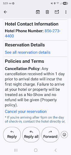 I received an email the next day that my issue would be addressed. Two days later a call came from a claims specialist informing me that their "service " discovered no bed bugs and that the room had not been occupied all week.....I was there on Tuesday. When I informed her I have not only managed decontamination of many bed bug infestations she asked if I had any photos. Well, I did attach them to my initial email. She then asked for my email... also in my...initial email. She said to send her the photos so she can place them in the"file". When I said I would include my laundry receipts, she said they will not be paid.