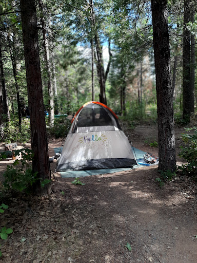 There is 2-3 trains every 1 ½-2hrs that last atleast 5min long each time pass that goes all day all night. The trains have different schedules every day. Sometimes no train and they pass at different times. But if u dont mind it, its really quiet between those times (not so many people) depending on the month u choose, like winter before they close the park on november 15th. Limit of days to stay is 14. We didnt experience any wild animal run ins except fecies of a small animal in many spots on the street path and one huge pile of Bear fecies by our campsite (#2) next to drinking water faucet; which there are alot of drinking water faucets in the campground.Some campsites are private and most are very open. 3 bathroom locations; one in beginning, 2nd in middle of park and 3rd at far end where it is much colder cause of the closeness of water. A river at each side. There is fishing. Clean bathrooms; toilet and sink. Marked men and women in the middle bathroom. Lots of paths to walk through. Beautiful. Host was amazing! I forgot his name but he was a older gentleman that had a long white beard that reached a pretty good distance.$15 a night. No day use. Big spaces for rv pull ins. Very dark/blinding at night, only lights are outside/inside bathrooms so bring flash lights & batteries.Closest market is super expensive so bring lots $$ but u are supporting it locally and they do have great burritoes and good selection of groceries...