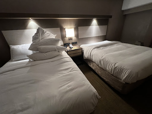 This was our first time staying at a Hilton, and when we first walked in, it had a wonderful smell. It was beautiful on the inside. The staff was helpful, and they were great all around. I have a service dog, and other hotels have given me issues with him before but not the Hilton, they said they were happy to accommodate us. The attached bar is wonderful, and the bartender was great. My significant other said the drinks were strong and the service was the best. The hot tub looked like it could have been cleaned, but it was warm and just what we needed, the pool was warm, which was perfect because it was cold outside. The room was nice, no fridge, so that was a con but the bed was nice and big and super comfortable. The shower was slightly small and there was hair on the shelf, but otherwise, it was ok. The part that really upset us was the neighbors decided to throw a rager at 130 in the morning to which it sounded as if a woman was being attacked, music was blaring, sounded as if they were running around, screaming. We called to see if the front desk would ask them to be quiet or move us, they asked them to be quiet and things just seemed to be louder after that, it sounded like things were being thrown into the walls and more screaming by the woman or women, men screaming at the women, we called back down and said they needed to do something now and we wanted our money back this was not the kind of stay you expect for 200+ a night hotel stay. The people next door were escorted out of the building as far as we were told and we were able to get some good sleep for the next 4 hours. There were other complaints from other guests about said guest also. The front desk was as helpful as they could be with us and said we would have to wait until Monday to see if we could get our money back or what could be done. Hilton itself was a great experience and we don't fault the hotel for the poor choices of our neighboring guests. We would stay at the Hilton again
