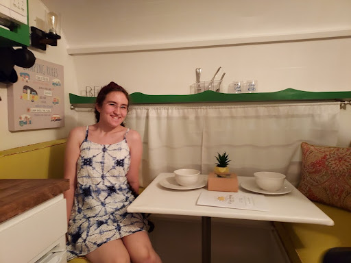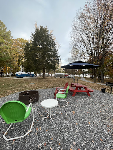 This is the COOLEST campground I have ever visited. We ended up here as overflow lodging from a family reunion held on a large (but not large enough) lakehouse in nearby Hamlin. I loved Kentucky Lake Glamping so much that I am planning a return trip in the fall. Yep, going to drive 2 1/2 hrs back to rural SW Kentucky just to visit this place again! This glampground is lovingly kept, every aspect was created with the customer experiences in mind. Down to the font and signage in the bathrooms. The food is amazing...onsite pizza and all day breakfast, plus an ice cream parlor and popsicles. Excellent coffee, too. We stayed in the Sundrop, the smallest camper, but it was so well organized and roomy inside, it didn't feel all that cramped with 2 adults, a 6 y o, and a large dog. (My daughter stayed over at the lakehouse but we could have squished a 12 y o into the room as well.) They have vintage campers, cabins, and a geodesic dome available to rent, as well as standard RV spots. Each camper comes with linens and towels, toiletries, running water, a microwave, toaster, mini-fridge, a hot plate, cooking implements, and a Keurig with "coffee shop" roast (my fave!). Each campsite has seating, a firepit, and a grill, We were greeted with a smores kit and firewood is available at the camp store. The camp store doubles as the cafe and an indoor gathering space, as well as hosting a covered patio and a grassy area for cornhole. The camp store was beautifully merchandised and well provisioned with both basics and fun stuff too. The staff is personable and caring, we felt like family the second we arrived. The bathrooms and clean and elegant, they felt way more like a hotel bathroom rather than a campground bathhouse. Be aware that each door is its own complete facility with toilet and shower, both. We walked around the building twice looking for toilets specifically before opening one of the doors marked "shower room." And they have a wheelchair-accessible one as well.