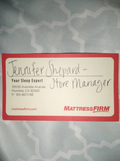 Read moreJennifer (Store Mgr) was absolutely fantastic. My husband and I spent 3 hours there (no joke) and we were not rushed or pushed into anything, but instead were treated wonderfully. Jennifer was very knowledgeable and did an excellent job explaining things to us about the different types of mattresses and made suggestions based on our wants and needs. When we left, we weren't entirely sure which mattress we wanted (had it narrowed to two), but we knew we would not be going anywhere else once decided. We decided later that day and went back to purchase from Jennifer. I wouldn't ever go anywhere else solely based on our shopping/purchase experience. We went a few other places and none could even come close to comparing to the excellent customer service and great purchase terms. The fact that they give you 120 days to try your mattress and can exchange if unhappy, that is a huge benefit when purchasing from this company. Our new bed is set to arrive in a couple of weeks, so I will update my review once we receive it, but this review is more for the purpose of recommending this company and particular Murrieta location to purchase from. We own and operate a business ourselves, so customer service is extremely important to us. You cannot get any better than you'll get...