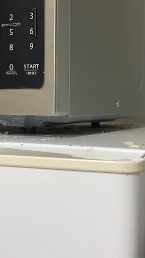 We only received four towels so we had to share to manage the slippery floor. The toilet door was a broken slab of wood without hinges and my partner got several splinters from it. There was an ugly badly painted slab of wood in a random closet that was also a hazard. The bathroom door was difficult to close and when it finally did we noticed a huge chunk was missing from the bottom likely from previous guests trying to gain privacy. The bathroom ceiling had mold as did the kitchen ceiling. The fridge and microwave were very dirty.