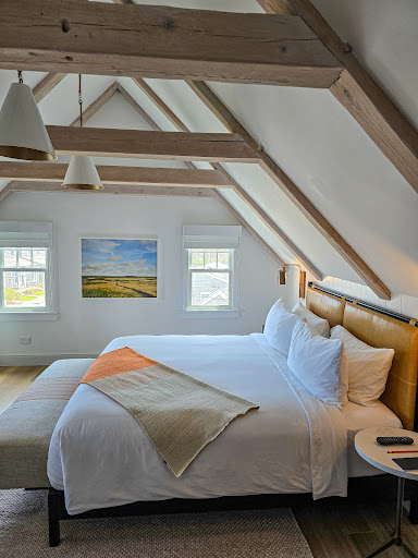 Amazing luxury experience from arrival to departure! Alicia and Jordan were our awesome on property concierges and they made it their mission to welcome us and look after us and anything we needed-even before we arrived. We walked from the ferry (so close to everything downtown) and checked in with Alicia on arrival to the warmest welcome, an overview of all the amenities and help with our luggage. The room was brand new, super clean and minimalist modern with a small kitchen that had a stocked fridge with some our favorite beverages, snacks and tons of ice along with a lovely welcome note from Alician and Jordan. We had a little living room, dining table and deck area and porch with porch swings. The bed was very comfortable, and the room temperature controls were perfect. The shower was awesome too. The hydrangeas were in full bloom so there were beautiful flowers all around the property and in vases. They had Adirondacks on the lawn, games and lovely fire pits at night on property. We got great recommendations for local restaurants and activities from Alicia and Jordan. Wow did they think of everything you can imagine making your stay luxurious, smooth and easy: They had electric bikes and regular bikes for us to use anytime along with the cutest yeti cooler that fit on the back of the bike perfectly. They also had beach towels, umbrellas, chairs and even sunblock if you forgot yours! They helped us with restaurant reservations. They even had a jeep for our use, game changer!!! The next morning, they had coffee and a great breakfast set up in the main building where you check in and it was delicious. It was baked breads, muffins, granola, yogurt, toasted artisan breads, jams, juices, bagels and such. Alicia and Jordan were available to us during our stay to assist with so much, including packing the car for the beach and ice for the cooler. We had so much fun on the beautiful beaches, downtown shopping and dining. We truly felt like we were at a home. We met up with friends who were staying down the road and they had to rent bikes that cost $1 per minute and there was absolutely nothing else offered to them to use for the beach or anything.