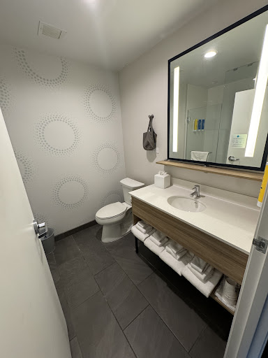 Read moreThis is a very comfortable place to stay and the staff at the front desk are so incredibly helpful and honest workers. Pretty standard room at first sight... but once you settle in you notice with great little modern design elements that are also functional (see the last paragraph to see what what included in my room). The beds are extremely comfortable. Great smelling shampoo, conditioner, soap, and lotion that are all in environment friendly dispensers (I have allergies to a lot of stuff - and had no issue with their product). Also, great water pressure! Gym with pretty new equipment. A laundry room with app or coin capabilty! A 24 hour market that has wine, beer, snacks, and semi emergency needs - so convenient when you need a snack in the middle of the night. Breakfast bar that changes up a little bit every morning (free). Cleaning staff are very friendly as well. The pool is a great feature but I love the hidden gems at this hotel that you may not see right away: board games in the lobby, modern and comfortable areas to relax in the lobby... little office cubbys with desks, lights, and privacy sectionals. A pool table too! I'm sure I've missed a few details in this review but for the price, overall, you get some great amenities and great service. Also, if you have any issue at all - if you bring it up they will absolutely help and do what they can. I only had one little issue and they went above and beyond. I didn't really complain... I just asked for clarification... and they truly did their best to help. Honestly, this might have changed my preference to airbnbs... I know what to expect when i go to Hiltons and now I'm realizing they give you the extra security and trust that are lacking with 3rd party places. Will edit/attach photos soon Location: Nearby a 711, a short drive to dunkin donuts, and a short walking distance to a restaurant. While you may drive into what seems like a industrial area... you are on the 2 main roads that will take you to the areas you want to go to (pretty much a straight shot). They also have white boards that are organized "things to do," "staff favorites," "bites," "drinks," etc. Other things included in a single king: Desk and desk chair, mini fridge, phone, alarm clock, ambient lights and larger fixtures (some are adjustable!), bench with storage, tv with access to live tv tubi and Netflix (you need your Netflix account info), thermostat heat/ac, wood floors, free wifi, alarm clock, (2-3) trash and recycling, multiple plugins, usb plugins, full length mirror, coat hangers, designated smoking areas outdoors, iron and board, hangers for clothing, ice bucket, privacy shade and blackout shades, end tables, kitchenette table, shower, extra safe...