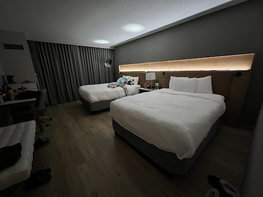Read moreThe hotel was great. We stayed in a suite. It was nice and clean. Not even any dust bunnies on the window seal or behind the bed.lol Loved the separation of the sitting area and bedroom. It had a kind of luxury studio feel. Very clean. Bed was VERY comfortable...Actually the best rest I have had in years...The tub was CLEAN enough for a sit down bath. (I mention this because there are so many hotels where we have stayed that do not clean the buildup from the sides of the tub....can anyone say..EWWW). Nice view frombthe top floor. The only negative things I can say about the room is that the tub had some rust around the drain and front of tub, and the shower. We really enjoyed the relaxing swim we had in the nicely clean pool. We had ordered takeout from the restaurant. Not impressed at all. Would have asked for a refund if they had not been closed. My husband had the Penne Cajun Alfredo w/shrimp, and I had the chicken and waffles(well waffle). He paid $23.($14.+ $9. extra for the shrimp) for his meal. This consisted of a very small portion of pasta slopped into a to go box. I say slopped because when he opened the box back in the room there was sauce everywhere. Extra sauce is usually good. However, It was just a WHITE WATERY MESS. Then, the shrimp that he paid $9. extra for was sparce. He only had 3-4 pieces. He was not happy with it. The meal that sounded so tantalizing by the description on the menu ended up being just a 'gut filler'. My meal, which was the Tennessee Spicy Chicken and Waffles, didn't make me too happy either. It consisted of 1 chicken breast cut in half and one 4"Ă4" waffle, just thrown into a small box. I felt like I had been given someones leftovers. The chicken was very dry and had so much spice to it that you could not taste the chicken. I like it spicy, but I like to taste the food, not just the spice. The waffle, which was also loaded with spice, was very dense and dry. It was like eating an unsweetened cake donut that had been coated with chili powder. No syrup was given either. Needless to say, when we checked out, the chicken and waffle was left behind.(of course the restaurant was not open when we checked out, so we could not complain). The Staff that we came into contact with were very nice. Other than the food, we had...