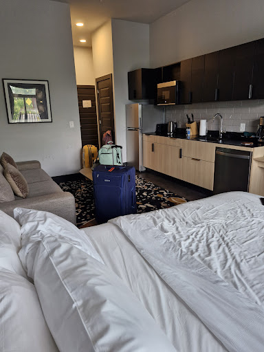Read moreWe loved the location. An Uber driver told us to be careful at night, but we felt pretty safe when walking around during the day and into the evening. We didn’t walk around the area at night. It was close to Broadway (few min Uber/Lyft ride) but also far enough away to escape the crazy of downtown. There are excellent dining options across the major road way in Germantown and we never needed a reservation to eat at those spots and loved every meal. The room was not bad, but had some flaws. Upon check in I had killed at least 5 little flies, not sure if they came in from the patio. The room wasn’t spotless and the cleaning could have been better (floor didn’t appear to be swept well, carpet didn’t appear to be vacuumed). The same trash we saw in the main lobby left out on tables was still there days later. The curtain rod above the patio was broken, but was managing to still do its job. The alarm in the main lobby was going off for hours one day and I messaged the chat to let them know and it was taken care of promptly after they were notified. Room was fully stocked with plates, cups, silverwear, cooking supplies and dish cleaning supplies. We would stay again. There is a closet with hangers available (plenty for 3 of us) but there are no dressers or clothing drawers to put clothes away. The pull out wasn’t the most comfortable. Having the bed against a wall did make it more difficult for whoever was sleeping wall side with getting in...