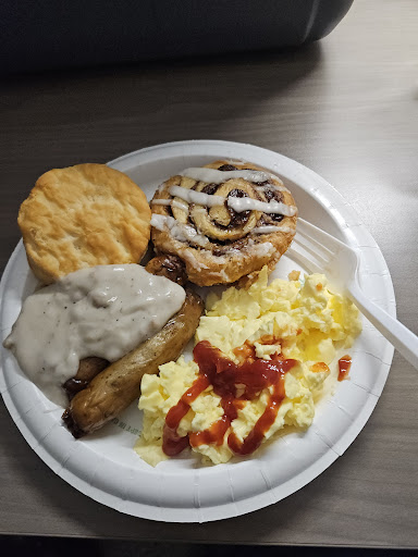 Breakfast...what a joke! Stale pastries (every day), dried out breads, rubbery/weird/tepid eggs, and GROSSLY watered down juices. Bacon & sausage was okay. Eating with tiny plastic implements is just ridiculous...doll house sized plastic ware. You'll see in other reviews the property owner blames this on corporate and what they are allowed to serve...poor excuse for stale products however.