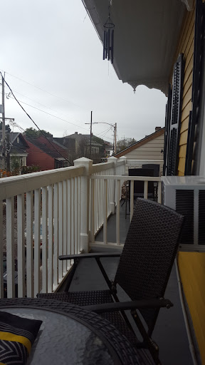 The balcony itself is absolutely beautiful. The Bywater (the neighborhood the Guest House is located in) is chock full of character and, after traveling the US fairly extensively, is pretty much my favorite neighborhood. It seems every house is brilliantly painted and has a lush garden, the street art is excellent, it's safe (one of the rare city districts where you'll regularly see young women walking/biking alone at night), it's quiet, atmospheric, and the food is amazing. A local bartender told me that "bars are like churches" in New Orleans, and it's true: you have three of them within view of the balcony, but they're so quiet! Even on busy nights they are hardly any disturbance.
