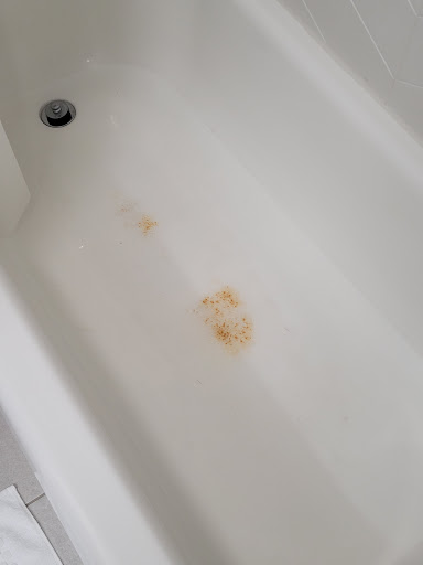 We have frequently stayed at this hotel over the past 6-7 years as we have family in the area and the location is convenient. I also have Gold status with Marriott Bonvoy and so we like to stay at Bonvoy hotels. ||||This hotel has gone way downhill quickly over the past few years. On our two most recent stays, in May and July, both rooms had tubs with major rust stains on the bottom. We had to shower with flip flops on as we did not feel safe standing on the rust. The most recent room had mold/dirt on the shower curtain and the a/c in the room did not work properly. The front desk told us "yes we know" that some of the rooms have tubs with stains and poor a/c. We also tried to sign into the "upgraded" internet but it was not working. The front desk had to call the manager who told them to call the internet provider to "turn on the faster wi-fi" but of course the front desk did not get ahold of anyone. Why have the option of faster internet if it is not set up? The hotel had one tiny bar of soap by the sink. We had to ask for more soap for the shower. The soap is the smallest hotel soap I have ever seen. The quality of the paper products (kleenex/toliet paper) is also very poor. The towels are thin. |||| On our prior stay in May, we were given a larger room, but again it was in poor condition. The closet door was damaged and the couch in the room was pathetic and not clean to sit on. ||||Overall, the rooms are just really run down. ||||The breakfast is very poor. On our July trip there were no bananas or other fresh fruit (other than unwrapped apples) at breakfast. The gal working the breakfast area had long hair not tied up or tied back. The hotel also used to have coffee in the lobby all day and they don't have that anymore either. ||||We gave this property a second chance in July after our bad experience in May. We will need to make other arrangements...