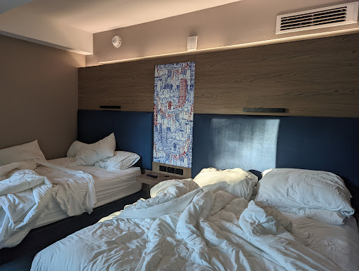 Edit: Went from 3 to 2 stars..worst Aloft I’ve been to. So far it’s been 1.5 weeks, and I will say AVOID this hotel. I Stan by everything I’ve said so far, in addition, I have to constantly call the front desk to have my room cleaned. No matter the time I leave my room, the house keepers never come in and I never have the “do not disturb” sign on, so I’m not sure what’s that all about. Seems as if, once they pass your room , they don’t come around to check on the rooms they’ve missed. On top of that, they never replace the toiletries. For example, they’ll take out the old hand soap and never replace it with a new one, or they’ll never replace the wash cloths or face towels. And they only give 2 towels at a time. One thing that annoys me is that they never give additional toilet paper, some will be left on the roll and instead of leaving an additional roll, ( since that’s what every other hotel I’ve been to have done) I ALWAYS have to call the front desk for one, and depending on who’s working that could take a few mins and multiple calls before they actually send someone to bring it. It’s just annoying. It’s like their cheap with replacing the toiletries. Room doesn’t have any good lighting, there are no additional lamps, no note pad or pen or any amenities that would make your stay comfortable. Hotel needs a serious update and...