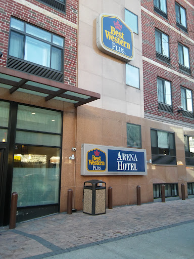 The hotel is in a rather sketchy part of town, and it's not an area I would feel comfortable letting my girlfriend walk around alone at night; however, during the day, it's fine. The nostrand A train is right across the street, and the nostrand C train is just a couple blocks away. It's about a 25-35 minute train ride into Manhattan (Times Square/Central Park.)