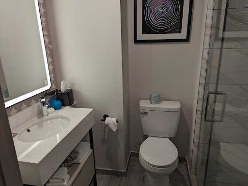 Read moreI would not stay here if it was free. This hotel is not safe or clean. We are Diamond member that stays in Hiltons all over the world. The stay here was terrible. The manager should be fired. ||The basic requirements of a hotel are security and cleanliness. I attached a photo of the door frame. The door would not close all the way. The entire door lock striker plate was gone. You had to slam the door shut and the door would still not seat correctly. ||To exacerbate this issue, we were put on the 7th floor, the same floor as the restaurant. Throughout the day and night staff and customers would come through the hallway. We had a restaurant customer knock on our door looking for the restroom. At one point a contractor knocked on the door looking to repair the television, which we never requested. ||Another night I woke up after midnight having “cotton mouth”. This was due to the excessive marijuana that was being smoked on the floor. The next morning the adjacent room acknowledged that they had the same issue and said it was not them. A photo of the fire door that was directly outside of our room that was not secured, next to the elevator, where anyone from the street could just enter the floor. It was open and closed all the time making it impossible to sleep. Photo attached. ||The cleanliness was atrocious. We had a sleeper for our 12 year old daughter. We called down for two hours trying to get bedding. Finally, someone from the front desk came up with bedding but no pillows, as they were out. When we opened the hide-a-bed, it had old sheets, used towels and Kleenex on the mattress. At no point did housekeeping make any attempt to clean the sofa. We literally took all the used bedding and threw it in the hallway. ||On top of these two significant issues, here are some of the other issues we had. The last night it rained hard. I could hear water dripping and sure enough the ceiling in the closet /storage area had water coming down. I attached a photo. Fortunately, I heard this at 4:00 in the morning and was able to move the suitcase and clothing away before they were damaged. The toilet stopped up and maintenance had to come up. At least that was quick. ||Lastly the elevator situation is as every other review state, it is unnecessary slow. There is no freight or employee elevator. When employees need to go from one floor to another, they use the same elevator as the guest. After waiting 20 minutes for the elevator, it is always full, including workers and contractors. Multiple times the employees would go from one floor to just one floor above or below with nothing in their hands when they could simply take the stairs. We saw one guest fall up the stairs after they gave up waiting for the elevators. ||We had other issues but you get the point, the manager clearly is incompetent. They should not be in hotel management. It is only a matter of time before a guest is seriously hurt or ill...