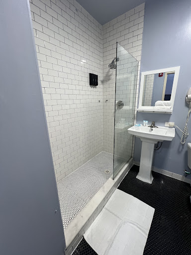 Moving on to the bathroom: the sink was tiny with no counter space but the biggest crime was that they didn’t even bother to install a shower door or even put up a curtain like ??? The entire hotel looks unfinished, from the front desk made of exposed plywood planks to scratch marks on doors and walls to a bathroom with no door like it just seems like they put zero thought and effort into catering to their guests. The elevator was also wonky with buttons that didn’t light up and would take you to random floors (we pressed the first floor multiple times and it kept taking us upstairs even though when the doors opened nobody was even there who had pressed the button). Breakfast is offered as “grab and go in a bag”??? if you happen to care about this.