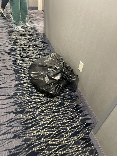 Unresolved Trash Issue: There was a large black trash bag sitting outside my rooms for over 16 hours, which caused the entire floor to smell like spoiled garbage. Despite informing the front desk staff about this issue twice, nothing was done to remove it.