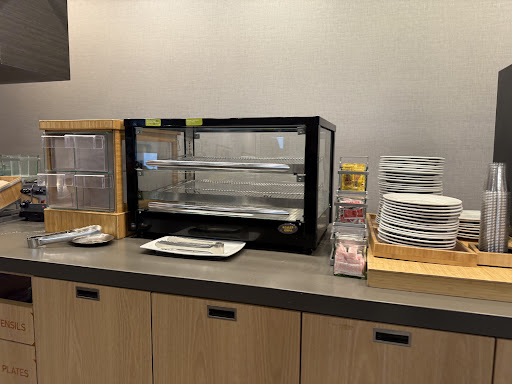 Breakfast: In the elevator they have a "guide" about the busy times and slow times. I guess I'll never make it to breakfast during the slow times. They have hot breakfast sandwiches that have numbers on them and you punch that number into the microwave to the correct amount of heating time. I'm still undecided if I like them or not. We were only there for one day so I'll reserve my judgment for a later time. They also had the normal Hilton type breakfast. Bagels, Danishes, fruit, oatmeal, juice, yogurt, cold cereals, coffee and more.