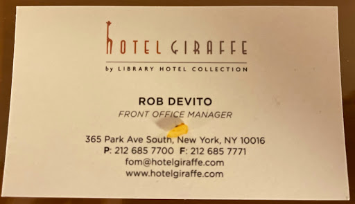 When I saw both charges, I went back to the Front Desk. The front office staff was very defensive from the beginning, as if they already knew what had happened. They were just mentioning that it was not their fault and that I had to solve it by myself with my bank. I showed them both charges from Hotel Giraffe from both credit card apps. The Front Office Manager, Rob Devito came into the scene but he kept the same position. Everything was my fault and it was an issue with my bank, so I had to solve it and they would do nothing for me. I would say that, whether is the customer's fault or not, I would expect a Front Office Manager to listen to the customer first, keep a nice and polite tone, and try to help as much as they could. That was not the case at all. Rob kept a very rude attitude since he started talking to me, and he confronted me several times with a very defiant attitude He basically did nothing to try to help me until I asked for proof about those "declined" payments. I then realized that they were doing random charges to our cards, ones including the "deposit" and others without including it. For my third card, they charged $538 but the "decline confirmation" they showed to me was for $638 (not for the $638 that they actually charged me). So they couldn't prove that the charge of $538 wasn't declined and I ended up paying almost $1000 for 1 night at a very standard NY hotel. After having to waste 90 minutes trying to talk with my bank, but I had to hang up the phone so I could at lest walk around NYC...