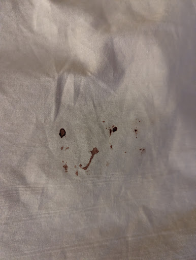 While she was showering, I decided to check the bed to make sure the sheets were clean, unstained, no bed bugs, etc. When I lifted the sheets, there was a stain on the mattress pad. When I lifted the mattress from the box spring/base, I discovered a dried, used condom directly in the center of the bed. After moving the mattress more in order to photograph/video the condom, I discovered the smoke detector stashed between the mattress.