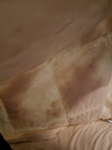 The room is super super tiny. I am 5'1 115 lbs and I bruised myself 3 times on the corner of the bed because I didn't have space to walk in the room but then again, I don't expect hotels in New York to be much bigger anyways. However, recently, I've been paranoid after reading an article about how hotels don't clean their comfortors so I've decided to put a flashlight under the comforters in this hotel and what I read on the article was right. It was absolutely disgusting (picture below). The sheets were covered with black specks here and there as well so it makes me think that they don't clean them so well. The walls and floor on the bathtub hadn't been cleaned as well because you can see the brown spots (dirt) in between the walls. Also, the "shower curtain" was nothing but a lightweight sheet so as you're showering, it will keep blowing on you and sticking on you.