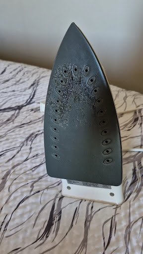 In the morning, while I was ironing my trousers, the iron left some black sticky substance on my garment. I REPORTED IT TO RECEPTION WHILE CHECKING OUT and the Receptionist suggested I MIGHT HAVE TURNED UP TOO HIGH. Mmmmm! Which I quickly refuted and SHOWED HER A PHOTO OF THE STICKY SUBSTANCE ON THE IRON, WHICH LEFT IRREMOVEABLE RESIDUE ON MY BRAND NEW TROUSERS. (See photos attached.)